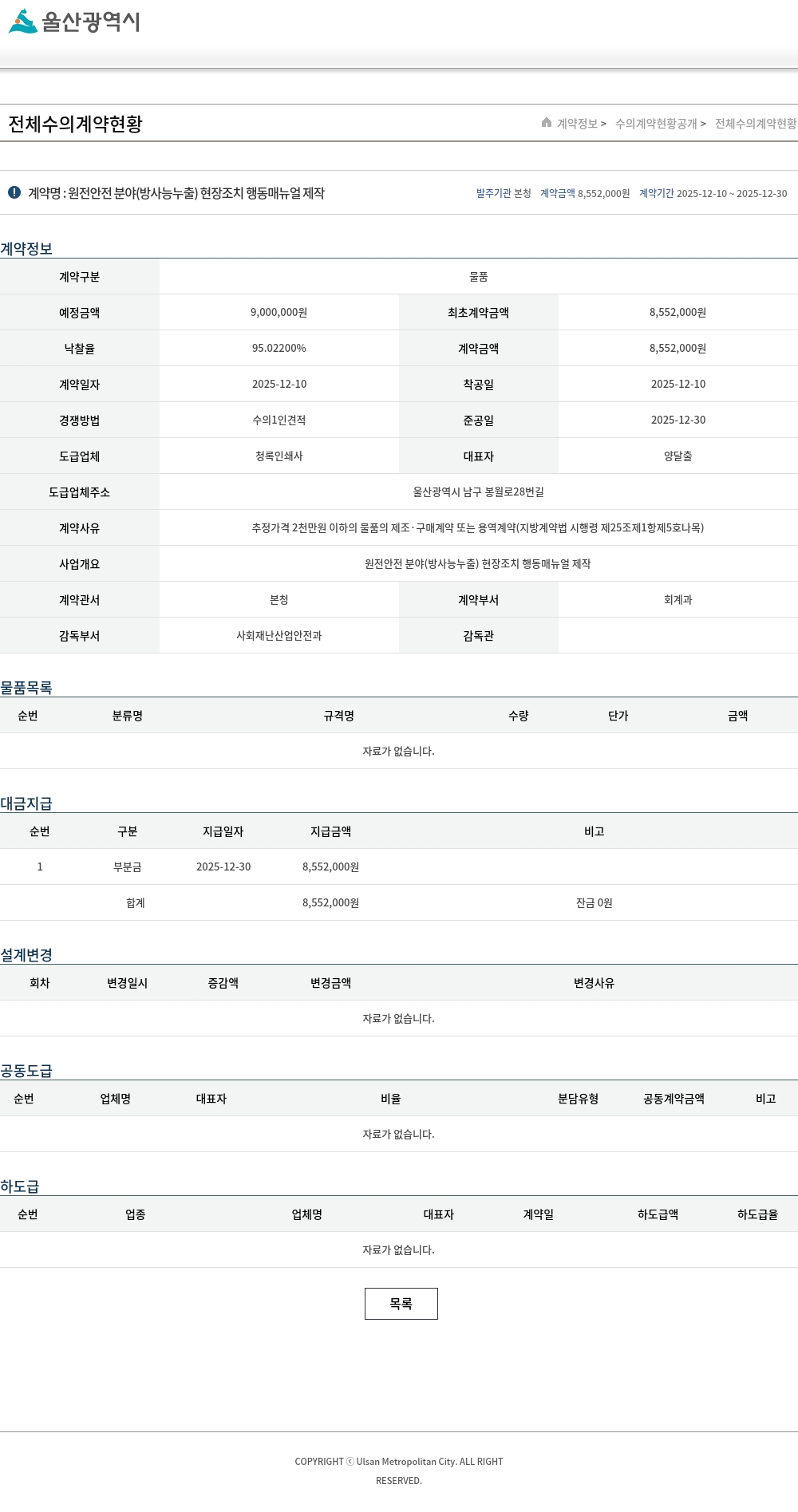 | 예정금액 | 9,000,000원 | 최초계약금액 | 8,552,000원 |