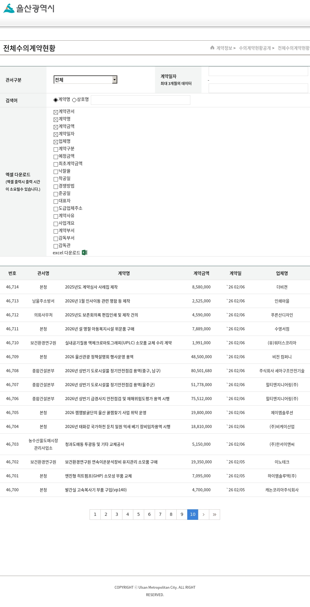 | 46,299 | 남부소방서 | 2026년 전산장비 유지보수 용역 | 10,332,000 | `25 12/30 | ㈜삼성전자사무기기울산총판 |