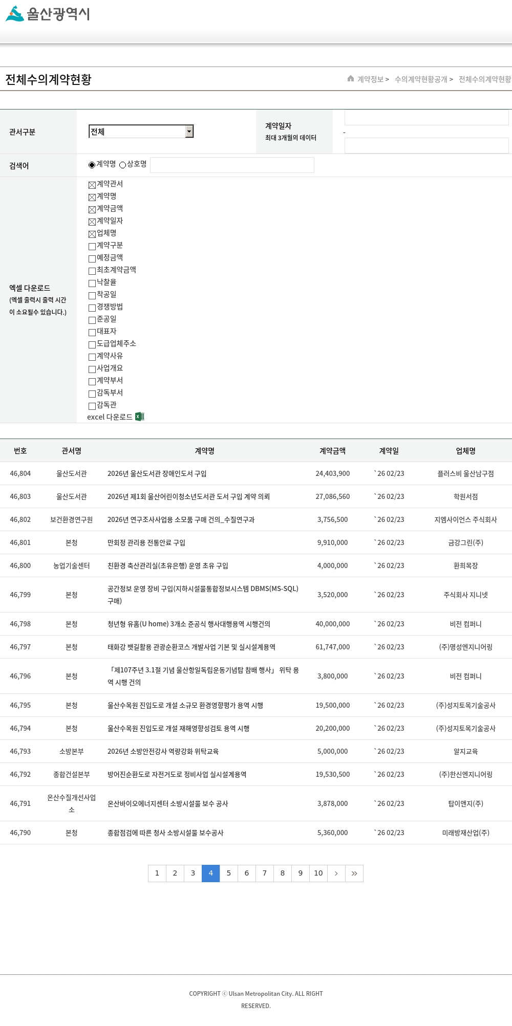 | 46,388 | 울산시립미술관 | 2026년 전자복사기 임차 | 3,120,000 | `25 12/31 | 오토텍 |