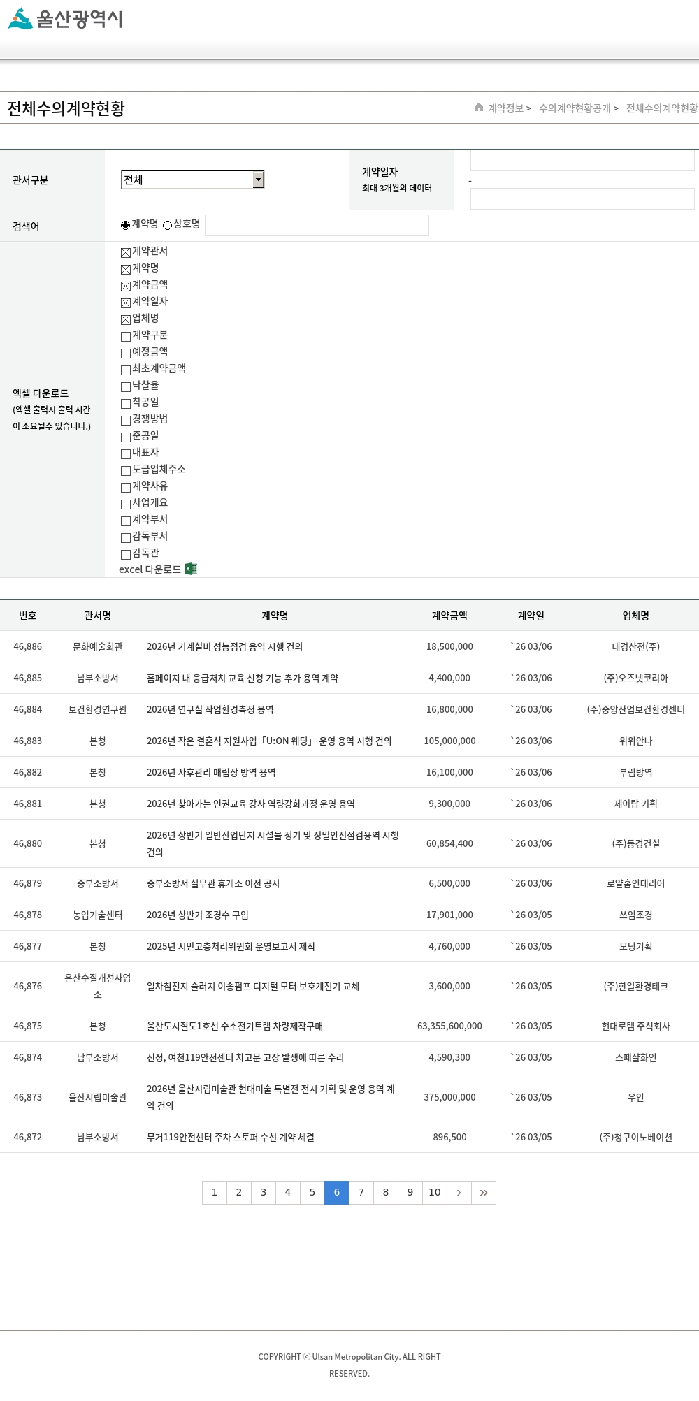 | 46,366 | 차량등록사업소 | 2026년 영상기기렌탈 유지보수 용역 | 2,478,000 | `25 12/31 | SK쉴더스(주) 중울산지사 |